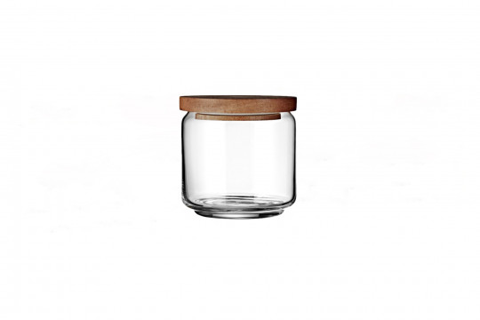 Kauniissa lasipurkissa on akaasiakorkki. Korkeus on 10 cm, halkaisija 9 cm.