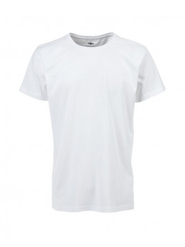 Kierrätysmateriaalista valmistetussa ekologisessa t-paidassa on pyöreä pääntie. Materiaali on 85 % kierrätettyä puuvillaa ja 15 % kierrätettyä polyesteriä. Konepesu.